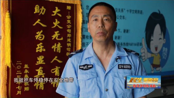 近日,東營市公交集團汽車四隊駕駛員鄭建明駕駛107路公交車行駛到北二路化工學院附近時,突然發(fā)現(xiàn)前方路邊停著一輛著火的小貨車,于是迅速停車幫助滅火。事后,小貨車車主為表示感謝特意制作了錦旗送到車隊,此事在東營電視臺播出。
