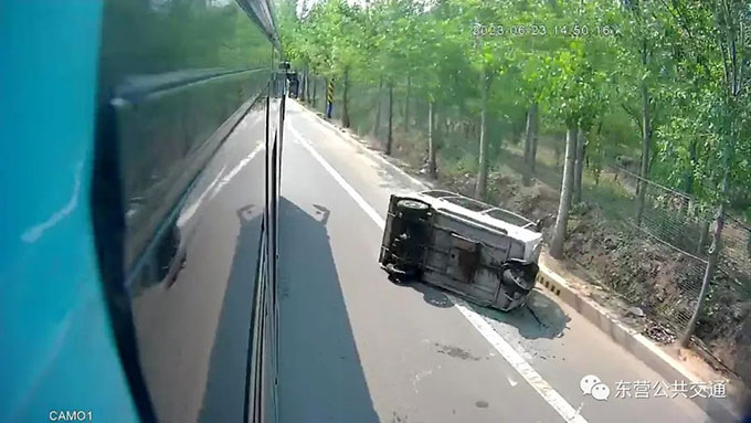 6月23日,東營的馬路上一輛“老年代步車”翻倒在地,車上三位人員被壓在車里動彈不得。東營市公交公司汽車四隊的孫建強師傅路過此地,憑借一己之力將三人全部救出,并撥打了120急救電話。