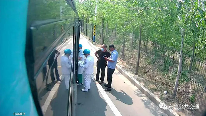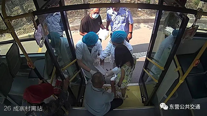救人后的孫建強仔細檢查了三人的傷勢,“由于電動車側(cè)翻擠壓,大爺胳膊受傷,被扎了玻璃碴子,大娘腰部受傷,小女孩的眼睛受了傷,腿也受了傷,我就趕緊撥打了120?!蓖瑫r,孫建強向所在車隊匯報了遇到的突發(fā)情況。車隊領(lǐng)導當即表示,安頓好車內(nèi)乘客,先救傷者。在等待救護車到來的時間,孫建強從公交車上拿了些衛(wèi)生紙和礦泉水,簡單幫三人清理了傷口。23日的東營正是高溫天,氣象臺發(fā)布了高溫紅色預警,當天的氣溫最高達到了41攝氏度,非常炎熱,“我們的公交車上都開著空調(diào),我就把他們扶到公交車上休息?!本茸o車很快就來了,醫(yī)護人員在給傷者進行包扎的時候,孫建強一邊安撫老人,一邊向老人詢問要不要幫忙聯(lián)系家人,老人告訴了他村里書記的電話。經(jīng)聯(lián)系,村大隊書記表示立即安排相關(guān)人員跟進。