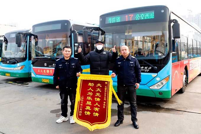 2023年2月7日下午,市民李先生來到市公交公司汽車三隊(duì),將一面剛剛定制的“大火無情人有情,助人為樂顯真情”的錦旗送到兩位駕駛員手中,向他們英勇救火的善行義舉表示感謝。