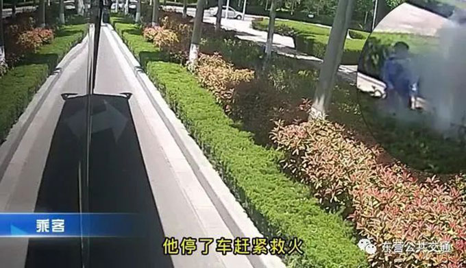 5月16日中午一點多,東營公交客服熱線968166的工作人員接到一乘客電話,對方稱要給自己乘坐的這趟公交車的司機(jī)點贊,“多虧他,不然火著大了,就麻煩了”。原來,當(dāng)天,在公交車運(yùn)行至東一路英華園學(xué)校附近時,駕駛員發(fā)現(xiàn)路邊綠化帶冒出滾滾濃煙,當(dāng)機(jī)立斷,將車輛靠邊安全停放后,拿起駕駛座旁邊的一個滅火器就跑了下去;在第一個滅火器全部用完后,火勢暫時被有效控制,他擔(dān)心有復(fù)燃風(fēng)險,又再次回到車上,取下另一個滅火器繼續(xù)滅火。