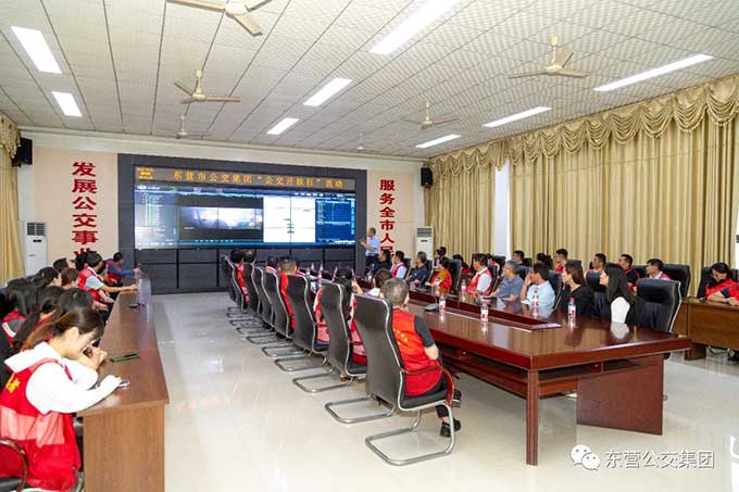 啟動儀式結束后,大家統(tǒng)一乘公交車來到市公交集團,參加東營市“公交開放日”活動,現(xiàn)場觀摩了市公交智能調度指揮中心、客服中心以及汽車一隊,詳細了解了智慧公交系統(tǒng)建設、公交業(yè)務辦理、車隊日常運營等情況,真正“零距離”“面對面”接觸公交、感受公交。