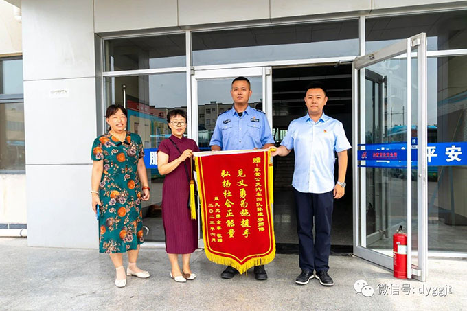 失主家屬杜先生趕做一面“拾金不昧好心人,雷鋒精神閃光輝”的錦旗,驅(qū)車來(lái)到車隊(duì)表達(dá)謝意。