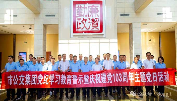 為慶祝建黨103周年,縱深推進全面從嚴治黨,努力推動黨紀學習教育走深走實,教育引導廣大黨員干部堅定理想信念,牢記使命宗旨,筑牢紀法底線,2024年6月27日下午,市公交集團組織黨員干部赴市廉政教育中心開展黨紀學習教育現(xiàn)場警示暨慶祝建黨103周年主題黨日活動,集團公司黨委成員、各支部書記及各部門單位主要負責同志參加。