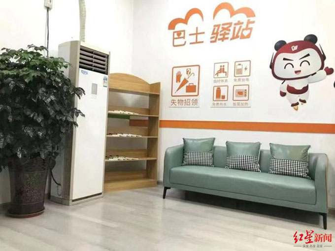 7月9日,紅星新聞?dòng)浾邚某啥脊患瘓F(tuán)獲悉,為提升服務(wù)質(zhì)量,延伸公交場(chǎng)站服務(wù)功能,近日,成都公交首個(gè)“巴士驛站”在金沙公交樞紐站正式亮相?!鞍褪矿A站”內(nèi)可提供失物招領(lǐng)、換乘咨詢(xún)等多項(xiàng)出行服務(wù),沙發(fā)、電腦、空調(diào)、飲水機(jī)、微波爐、冰箱、充電插座等便民服務(wù)設(shè)施一應(yīng)俱全,供乘客免費(fèi)使用。