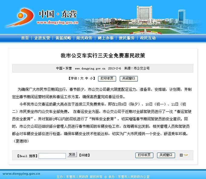 2013年2月1日東營市政府網(wǎng)站報道