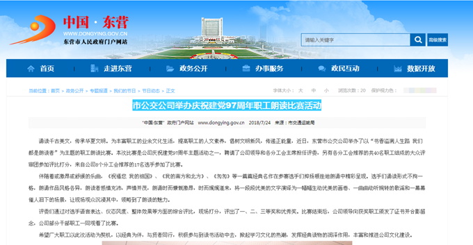 2018年7月24日東營市政府網站報道