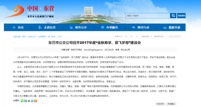 2017年8月28日東營市政府網(wǎng)站報道