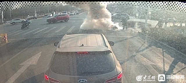 眼看火苗隨風(fēng)越燒越旺,危急時(shí)刻,17路駕駛員張曉良駕駛著魯E97102公交車運(yùn)行途經(jīng)此處等紅燈,遠(yuǎn)遠(yuǎn)地看到前方冒著火光和滾滾濃煙的電動(dòng)車,他拿起車載滅火器沖了過(guò)去,“當(dāng)時(shí)路上的行人和車輛較多,情況十分的危急?!睆垥粤蓟貞浾f(shuō),他沒(méi)顧上仔細(xì)查看,把一瓶滅火器噴完,便抓緊回到車上繼續(xù)運(yùn)行。